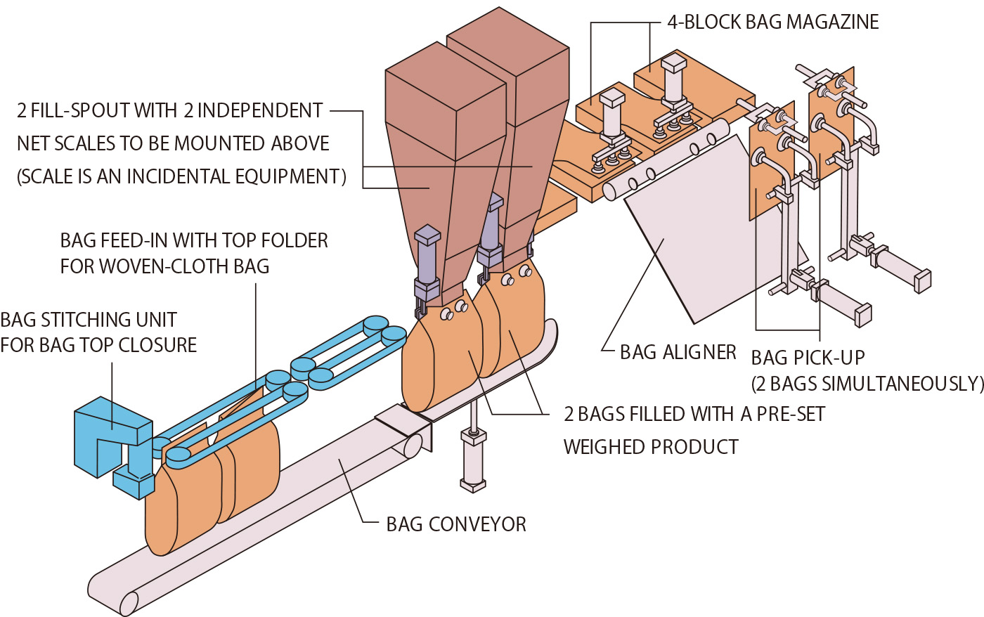 | Filling System | 1 Chute, 1 bag filling | 1 Chute, 1 bag filling | 2 Chute, 2bag filling |