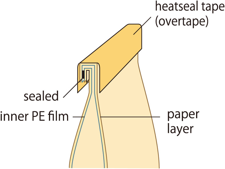 Crease and fold the bag top once, then seal with over tape.