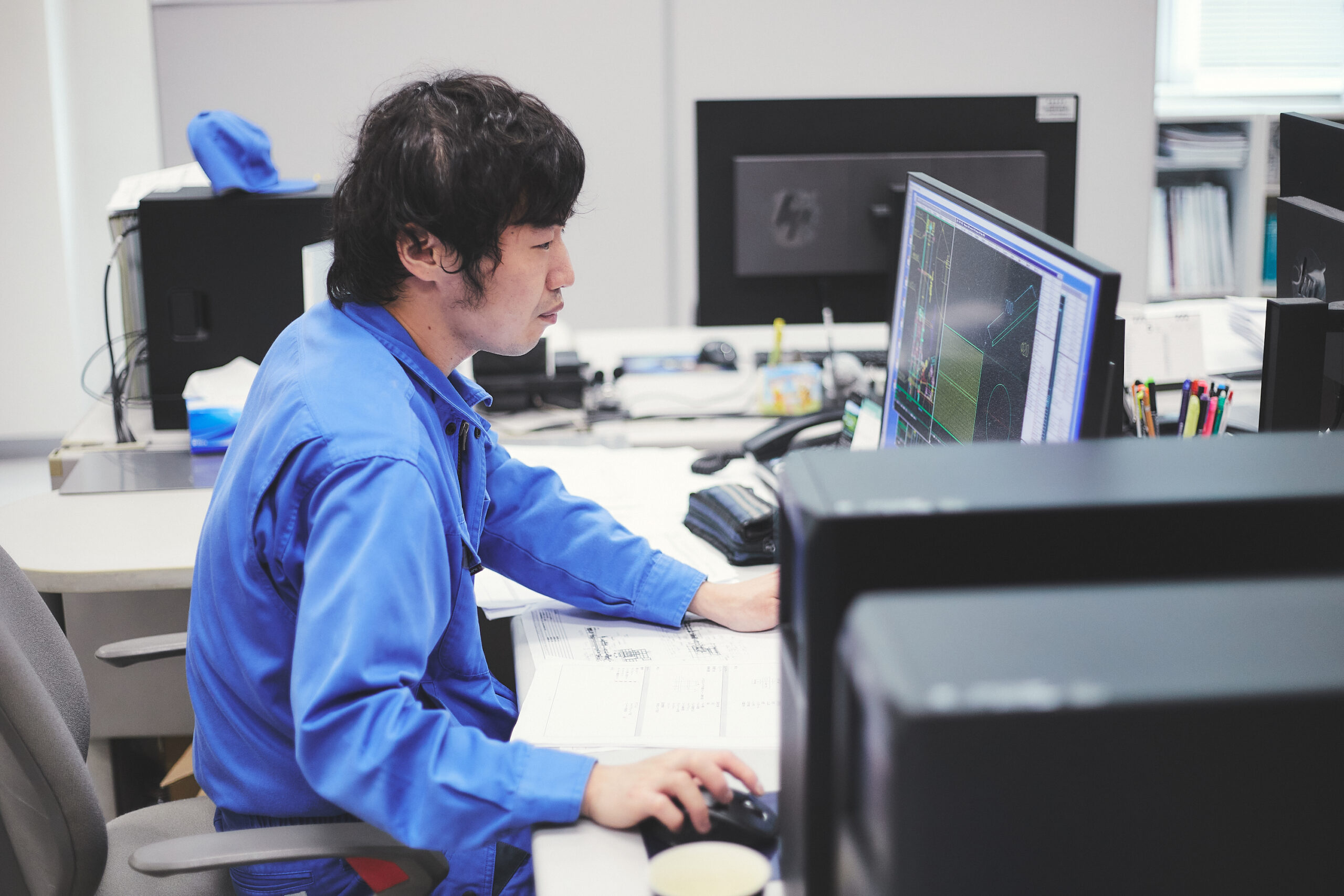 当社は設計室と工場が同じ敷地内にあり、機械の製造工程を確認しながら仕事を進められることに魅力を感じ入社。