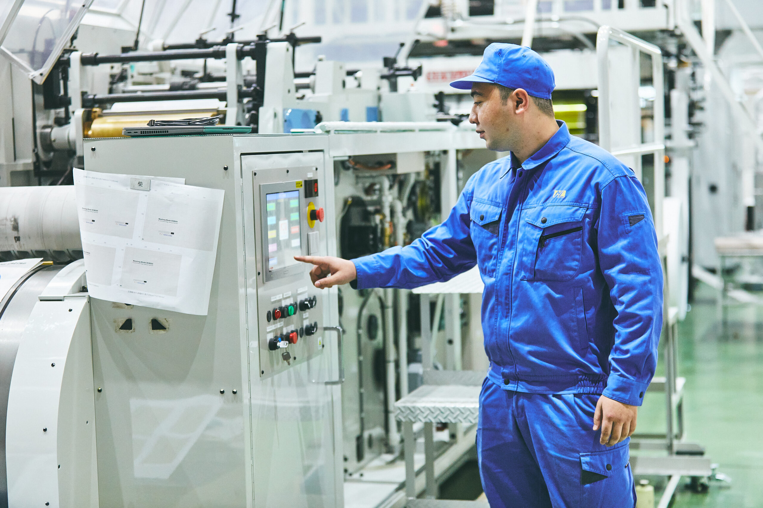 設計部は機械設計と電気設計に分かれます。私は電気設計を担当し、主に紙袋を作る製袋機の回路設計、コントローラーやタッチパネルのプログラムなどを作成しています。