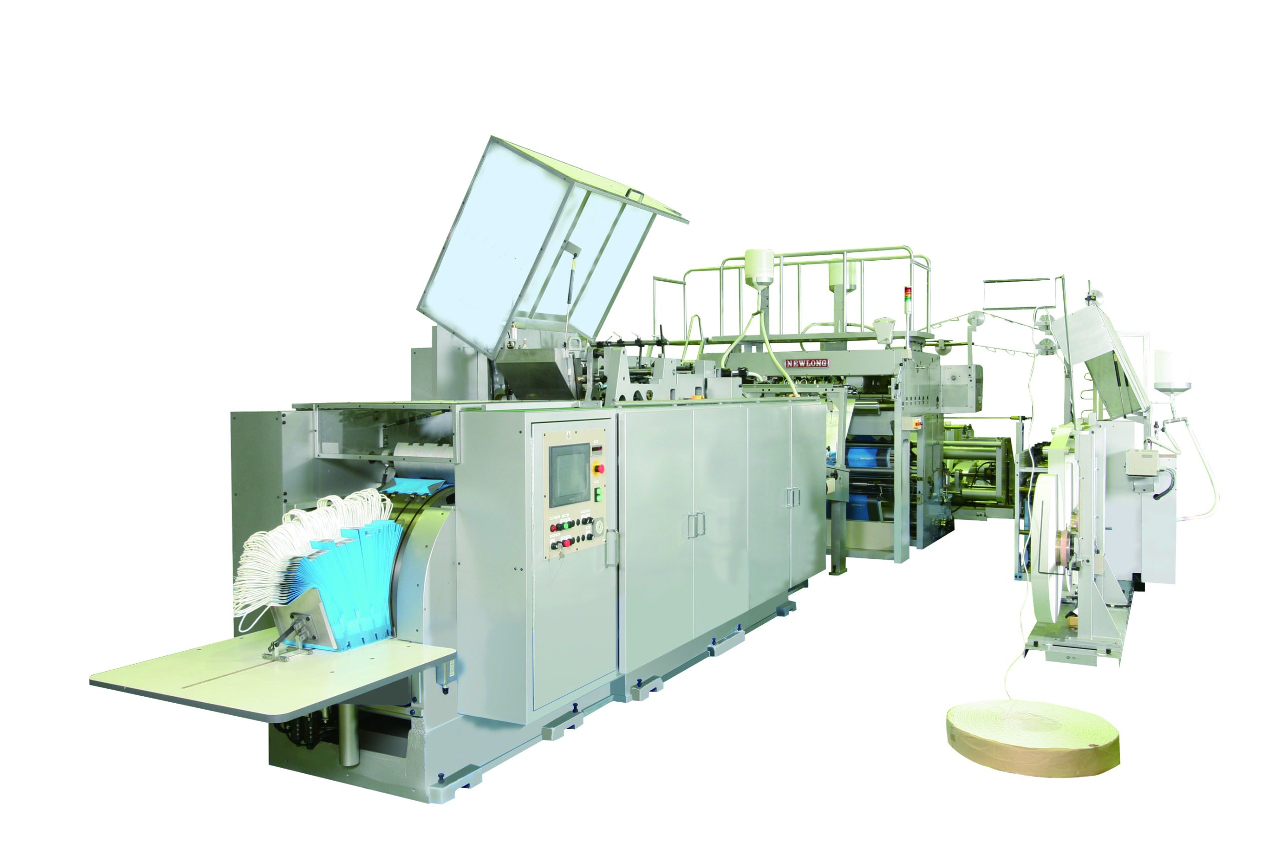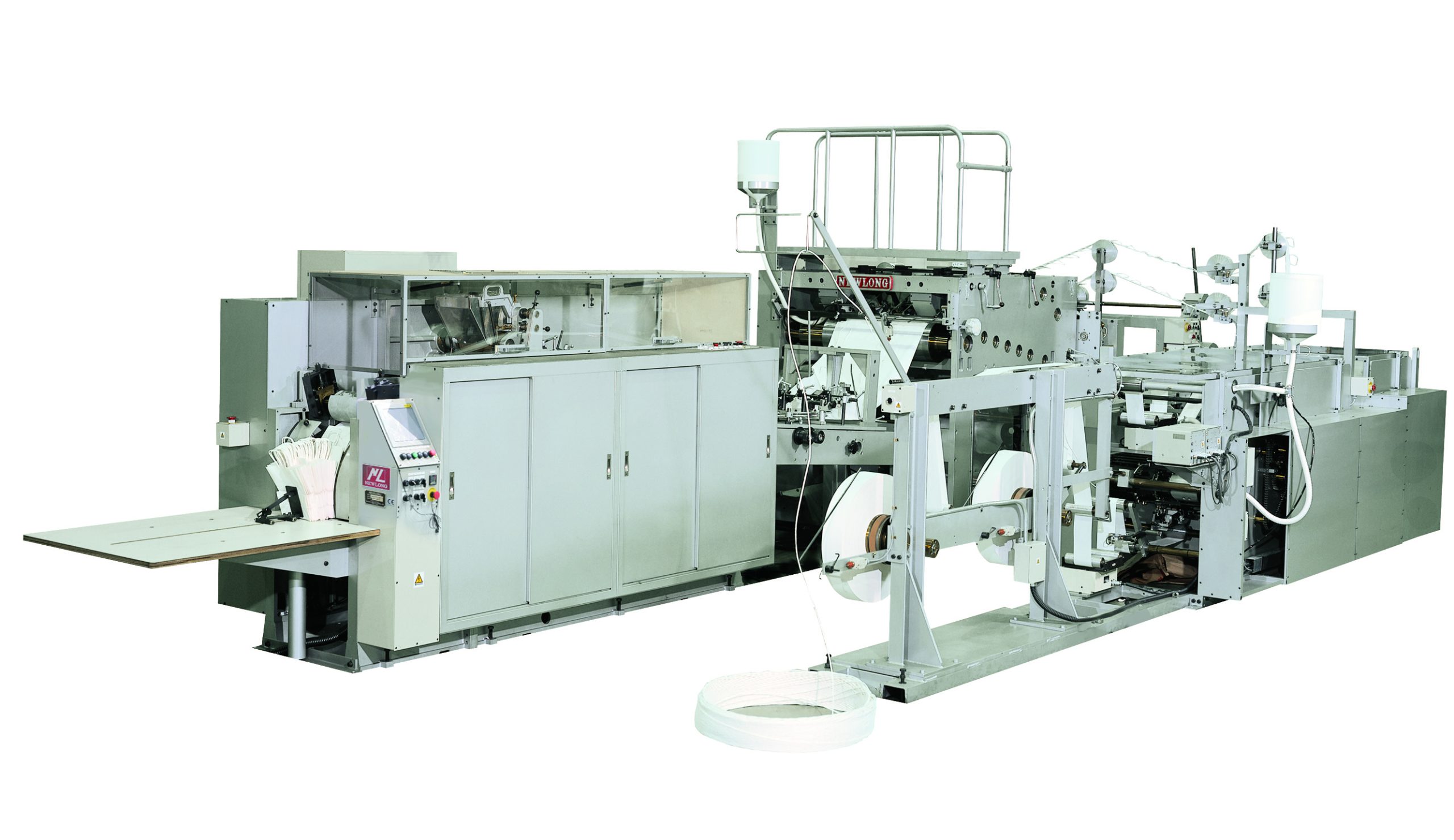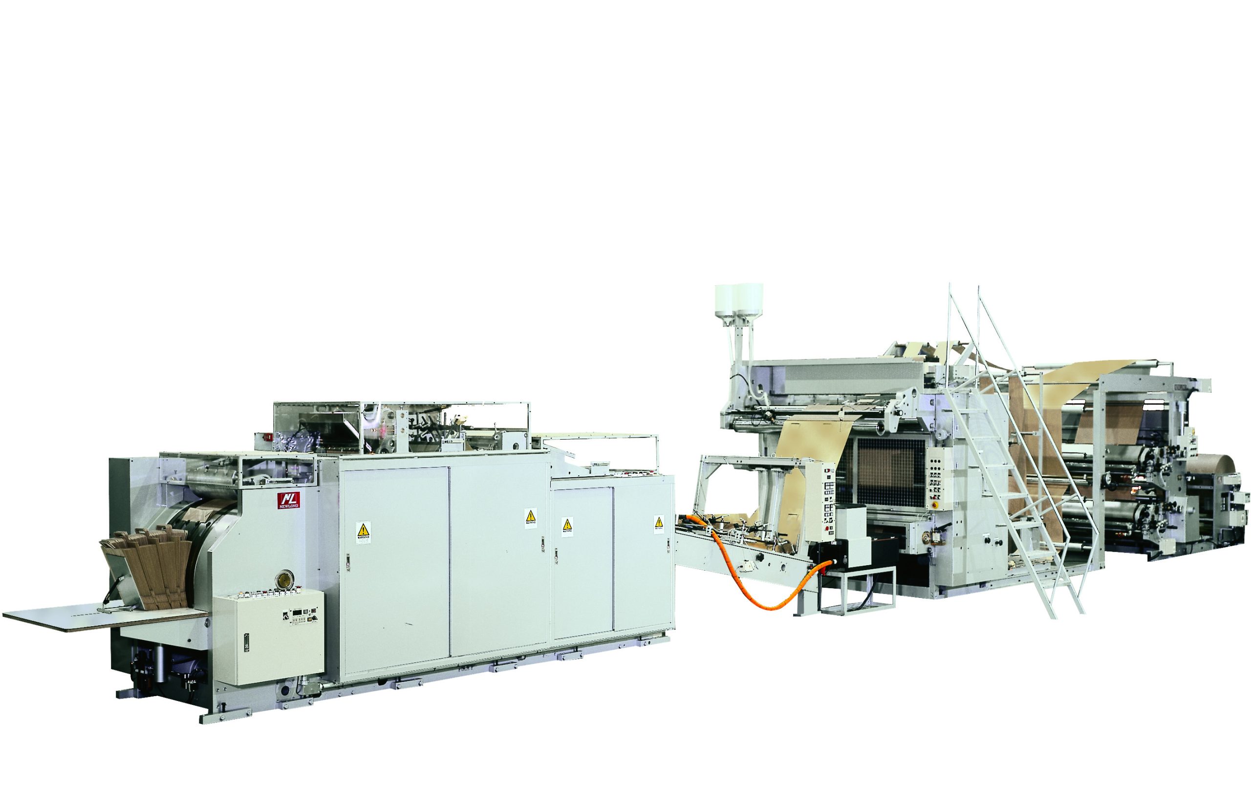 紙テープを一辺方向に順次折り込んで八つ折りにし、紙パッチと共に袋内側に貼り付けます。スタンダードでは、把手が内側に折り曲げられていますから取扱いが容易です。 オプションとしてサーボモーター搭載機種は機種番号の後にSを付けてHS型(508HS等)と表示されます。