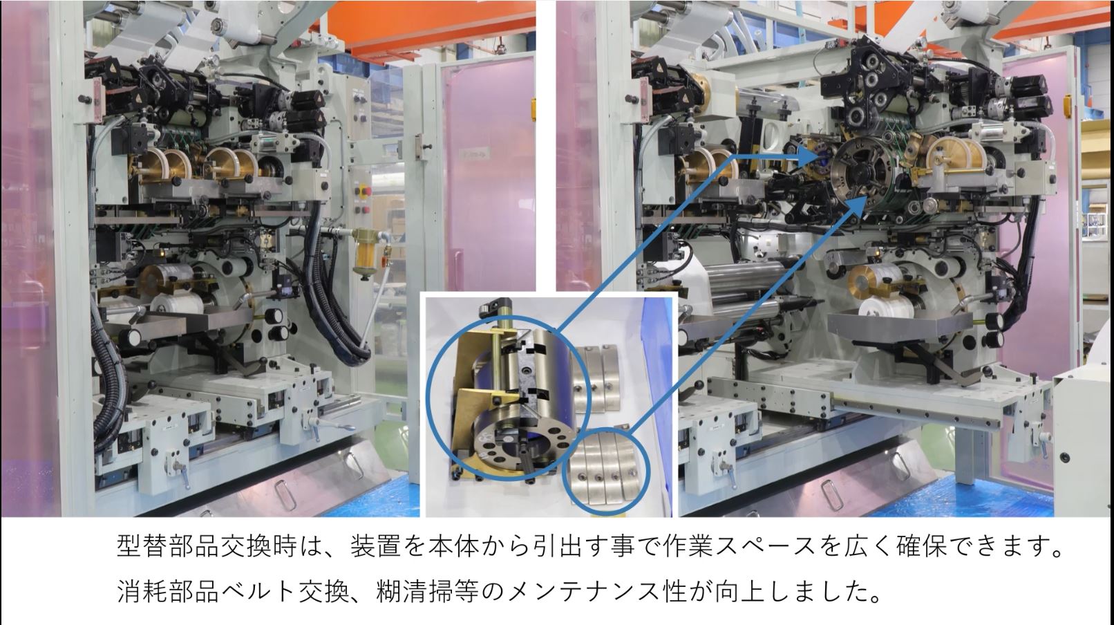 - チューブ成形部から切断装置までに透明カバーが付き安全性が向上しました。