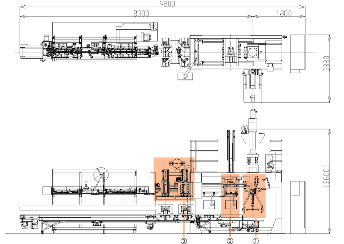 • 2次セクションで脱気効率アップの真空脱気棒、または計量精度アップの補正計量のいずれかを設備可能です。