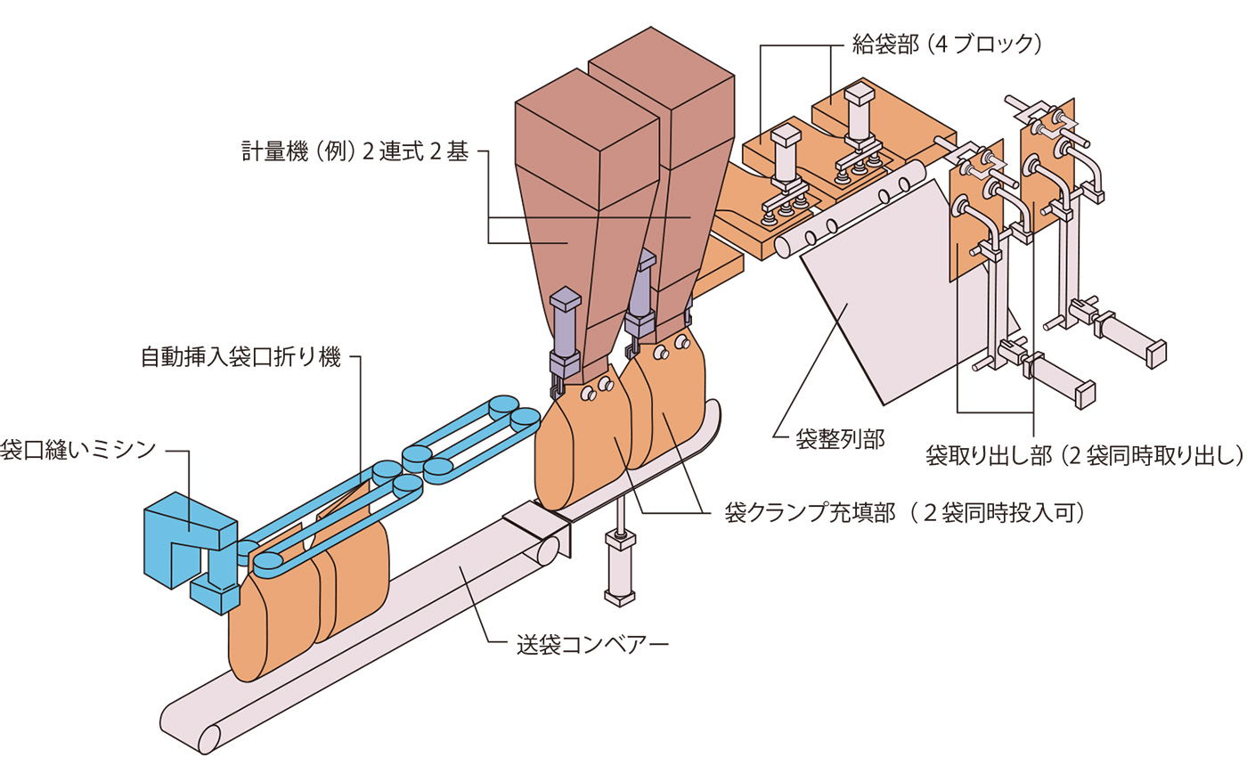 | 充填方式 | 1シュート、1袋充填 | 1シュート、1袋充填 | 2シュート、2袋充填 |