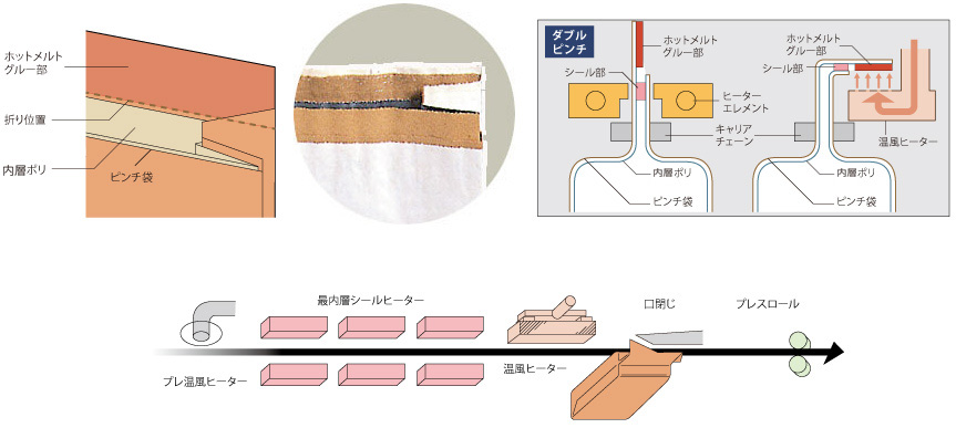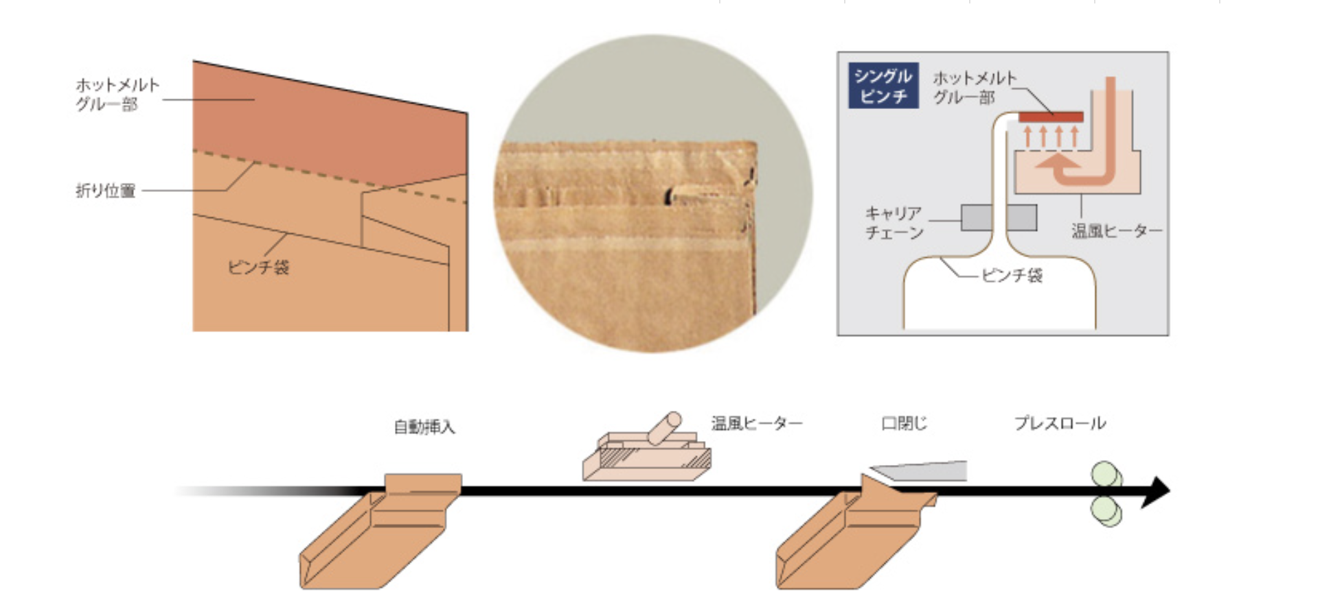 紙ピンチ袋・ポリ内層ピンチ袋の口閉じプロセス