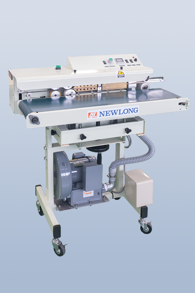 型標準仕様機に脱気装置を装着。袋内部の空気を70 ~ 80%ブロアーで抜き取ってから袋口シールを行います。
